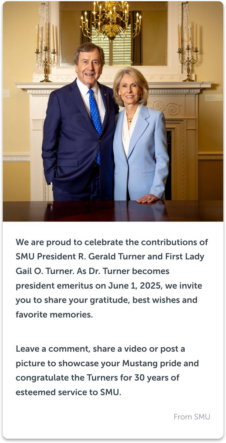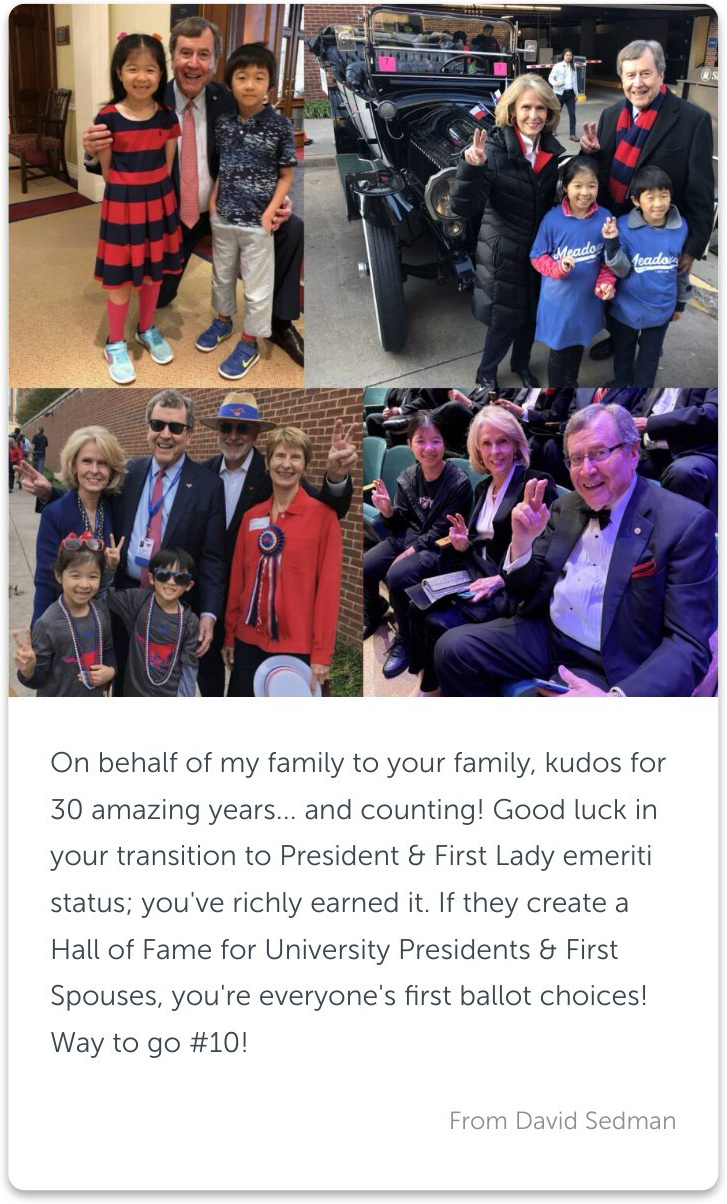 We’re celebrating 30 years of progress under R. Gerald Turner’s leadership. Read the messages left for him left for him as he transitioned to president emeritus, scroll through the timeline to revisit the most significant moments during his tenure, and see an overview of the transformation of the campus during his presidency.